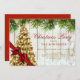 Christmas Party | Rustic Gold Tree & Red Ribbon Invitation
