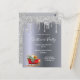 Faux silver foil as background, with faux silver drips and a vintage red Santa Claus sleigh filled with gifts as decor. With the text: Christmas Party written with modern and trendy large hand lettered style script. Templates for your party information.