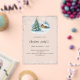A winter invitations for a Christmas party. A frosted background, decorated with a watercolored decorated Chrustmas tree in the snow, a small wooden house and faux sparkling glitter. Personalize and add your party details.