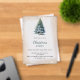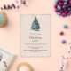 A winter invitations for a Christmas party. A frosted background on the front decorated with a watercolored hand-drawn pine tree with snow and faux sparkling glitter. Personalize and add your party details.