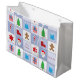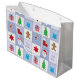 A large gift bag designed with some Christmas symbols on blue tones. Merry Christmas!