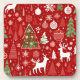 Christmas pattern snowman santa trees grey decor coaster