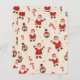 A seamless Christmas pattern with small, vintage-style illustrations of Santa Claus, reindeer, snowmen, and candy canes on a cozy, knitted sweater texture background.