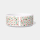 This is a heavy, durable bowl decorated with Tibbies of many colors, the perfect size for hungry/thirsty Tibs. The design is interesting and printing clear.
