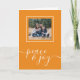 Christmas Peace and Joy Typography Holiday Photo card from Ricaso - designed with a wonderful flowing typography Peace & Joy text to the front - this fun colourful orange design is sure to be a hit with family and friends .. easy to add your own text and photo - Send your greetings in style this holiday with a personalized greetings card with a delicate typography - also available in other colours in store and in a range of coordinating products from the Peace & Joy range