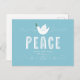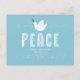 This simple but sweet holiday postcard features an illustration of a dove over the word peace. It has space for a greeting, your name, and the year. The back of the postcard can be used for a personal message.