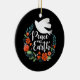 A pretty Christmas ornament featuring a dove in a floral wreath with the words Peace on Earth. The Christmas ornament is designed in black, red and white. An elegant holiday ornament for your Christmas tree. Designed for you by Blackberry Boulevard.