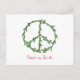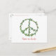Postcard with holly peace wreath on front, and the words "Peace on Earth". On the back is a smaller wreath, and the words "Wishing you peace at the holidays and always..."
