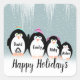 Cute Happy Holidays penguin family of 5 with icicles and personalized names in snowflakes.
