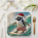 Christmas Penguin Surfing On an Ocean Wave Paper Plate