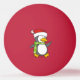 A little penguin cartoon with santa hat and green scarf walking on snow.