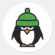 Merry Christmas penguin with winter hat cartoon stickers. Funny design with the winter Holidays. Custom background colour.