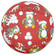 Seamless cute and happy little penguins cartoon background wearing santa hats and scarfs and playing with snowballs.