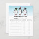 Helpful checklist for planning Christmas gifts for friends and loved ones. The design features Destei's original illustration of three festive Gentoo penguins holding colourful Christmas lights with their beaks. One penguin is wearing a green scarf, another one is wearing purple ear protection and the third penguin in the middle is wearing a red and white Santa hat. The background is a light blue gradient. The top reads: "Christmas gift list" and then there is space for the recipient's name. There are also sections for gift ideas, price, whether the gift has been bought or not and whether the gift has been wrapped.