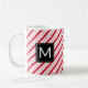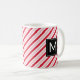 Celebrate the sweetness of the holiday season with this peppermint candy cane pattern mug. The modern design features red and white stripes with a white monogram letter in a black square frame. Makes a great customized Christmas gift. Fill with candy, cocoa mix or other goodies for an extra treat!