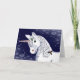 This illustrated unicorn features a candy cane colour horn and holly in his mane. Snowflakes fall all around. Inside it offers Best Wishes for a Fantastic Christmas Season! Mixed Media illustration by T.A.Paxton