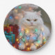 Christmas Persian Cat Tangled in Holiday Lights Paper Plate