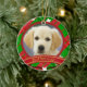Christmas Pet Dog Photo Green Red Personalized Ceramic Ornament