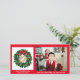 Christmas Photo card Holly Wreath, Customize with your names and upload your own image and you are done. You can further customize this card by changing the background colour.