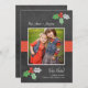 I take a vacation with features of elegant design and chic "Paz, amor e Alegria", "Merry Christmas" and a personalized text with a manuscript by the chalk, modern holly bay illustrations, and a large square space to display a favorite photo. Photo Tip: Culture your photo to a size before downloading. Colors: white, green, red, orange and red on a background with an appearance texture of the black frame.