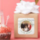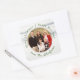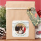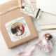 Merry Christmas from the family, photo sticker. A snow covered sticker (round or square) with photo template and custom text to seal Christmas cards. Holiday greetings, in fun printed font style, curve around the central round picture of the family (or any photo). Include the family name beneath the image. Use ONLY the round or square size stickers.