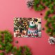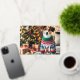 Christmas party invitation featuring real foil on the front. Add your photo (or keep what is shown). Great for your Christmas party or special event. Nice blue and gold colours. Custom text on the front and back. Use the template to create your own Christmas party photo foil invitation.