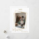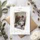 Modern, elegant Christmas card, with a faux gold geometric photo frame. Personalize and add your family name. Merry Christmas written with a trendy handlettered style script.