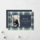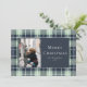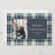 Christmas Photo Holiday Blue Mint Plaid Flat Card