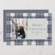 These Christmas holiday 7" x 5" flat greeting cards feature placeholders for your favourite, personal greeting, year and name, on a beautiful dusty blue, light mint green and white plaid background.