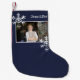 Christmas Photo Navy Blue Distressed Snowflakes Small Christmas Stocking