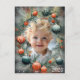 This customizable photo Christmas card showcases elegant winter-themed Christmas tree ornaments that beautifully frame your chosen photograph. It's an ideal choice for special occasions during the Christmas season. This card is certain to make a stylish and eye-catching statement during the holiday season, serving as a wonderful keepsake. The colour scheme includes traditional green, red, white, and various shades of grey, and you can personalize it by inserting any photo you desire. The design incorporates whimsical Christmas tree branches, Christmas baubles, and festive decorations, creating a joyful and celebratory atmosphere. On the flip side, you'll discover pre-written greetings that can be customized to your liking.
