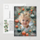 This customizable photo Christmas card showcases elegant winter-themed Christmas tree ornaments that beautifully frame your chosen photograph. It's an ideal choice for special occasions during the Christmas season. This card is certain to make a stylish and eye-catching statement during the holiday season, serving as a wonderful keepsake. The colour scheme includes traditional green, red, white, and various shades of grey, and you can personalize it by inserting any photo you desire. The design incorporates whimsical Christmas tree branches, Christmas baubles, and festive decorations, creating a joyful and celebratory atmosphere. On the flip side, you'll discover pre-written greetings that can be customized to your liking. On the flip side, you'll discover pre-written greetings that can be customized to your liking.