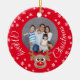 Christmas Photo Red Cute Reindeer White Script Ceramic Ornament