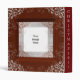 A rich burgandy colour with silver swirls and detail. Easily add your own family image to the binder.