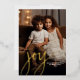 A modern look for a holiday photo card. A gold foil word - joy - is on top of the photo and holiday greeting.