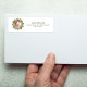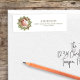 This design features a Christmas greenery foliage wreath return address label with a botanical photo circle wreath pine, a holiday simple minimalist classy, a Christmas holiday mailing supplies, a Christmas holiday sticker address label, a whimsical cute simple typography, a holiday return address sticker label, a traditional simple block style lettering, a red ribbon traditional gradient, creative unique simplistic elegance