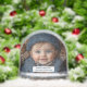 Snow globe with acute baby boy wearing a blue hat and sweater, you can personalize with your photo, and add your text , Merry Christmas, I Love You, or anything you like. Reverse has an image of an adorable Snowman driving his blue car through the snowy countryside with "JOY" written on the door. His car is filled with pretty wrapped Christmas gifts.
