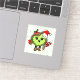 Cute little hand drawn cartoon Kawaii style festive Christmas pickle holding a candy cane in a Santa hat.