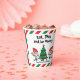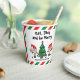 Cute Christmas pickleball dwarfs, custom text Paper Cups on white background. Eat, dink and be merry