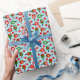 Christmas Pickleball Red Green Snowflakes Blue Wrapping Paper