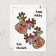 Funny Christmas pickleball folded vertical greeting postcard with cute Reindeers and pickleballs on white background. Customizable text front, back.