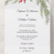 Introducing this exquisite All-in-One Christmas wedding Invitation, designed to infuse the joyous spirit of the holiday season into your special day. With elegant pine sprigs and red berries this invitation captures the essence of a winter wonderland wedding. The All-in-One wedding invitations are both beautiful and practical by combining the wedding invitation with an easy to remove perforated RSVP postcard. They are also quick and easy to prepare for mailing. Simply address the invitation, fold the back flap and seal with the included clear stickers. Once your guests receive the pre-addressed invitation they simply tear off the perforated RSVP card and drop it in the mail.