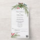 Introducing this exquisite All-in-One Christmas wedding Invitation, designed to infuse the joyous spirit of the holiday season into your special day. With elegant pine sprigs and red berries this invitation captures the essence of a winter wonderland wedding. The All-in-One wedding invitations are both beautiful and practical by combining the wedding invitation with an easy to remove perforated RSVP postcard. They are also quick and easy to prepare for mailing. Simply address the invitation, fold the back flap and seal with the included clear stickers. Once your guests receive the pre-addressed invitation they simply tear off the perforated RSVP card and drop it in the mail. The addition of the QR code allows your guests to easily access your wedding website for information including reception details and dinner choices!