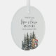 Celebrate the journey of love with our enchanting glass ornament "our love is wild". Perfect for engaged couples! Featuring the heartfelt Minimalist Christmas Fall Rustic Teddy Bear Penguin Pine Trees Outdoorsy Couple Engaged Black Script glass ornament elegantly personalize or customized scripted against the devotion and love to one another. This ornament captures the magic of new beginnings.