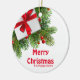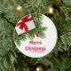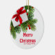 Christmas Pine Trees with White Present Red Bow Ceramic Ornament