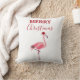 Christmas Pink Flamingo Bird with Santa Hat Throw Pillow