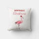 A funny pink flamingo getting in the Christmas spirit by wearing a Santa hat. A unique summer tropical Christmas pillow that will make your friends and family giggle. Ideal tropical Summer beach Xmas design for your Christmas decor and gifts. Customize the text and make it your own.
