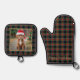 Christmas Plaid Custom Gold Photo Pet Dog Family Oven Mitt & Pot Holder Set