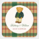 Christmas Plaid Preppy Bear Baby Shower Square Sticker