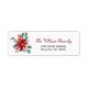 Christmas return address labels depict a simple watercolor floral design with green Eucalyptus, a red and pink Poinsettia and berries.